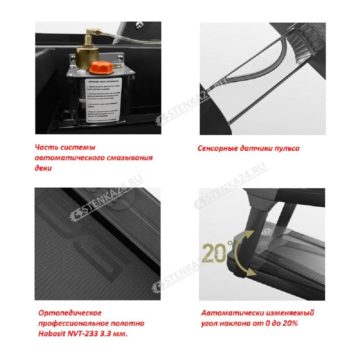 Мультимедийная компонента представлена динамиками мощностью 5 Ватт с разъемами AUX и USB для подключения мобильных устройств и воспроизведения через них аудио-файлов. AUX имеет вход IN и выход OUT. В первом случае можно подключить смартфон, планшет или MP3-плеер и вывести на динамики аудио файлы. Во второй разъем можно подключить наушники. Через USB вход также можно подсоединить флешку для воспроизведения аудио. Еще одна полезная функция – через USB вход можно заряжать мобильные устройства. Для удобства размещения смартфона или планшета предусмотрена подставка. Дорожка имеет транспортировочные ролики и компенсаторы неровностей пола.