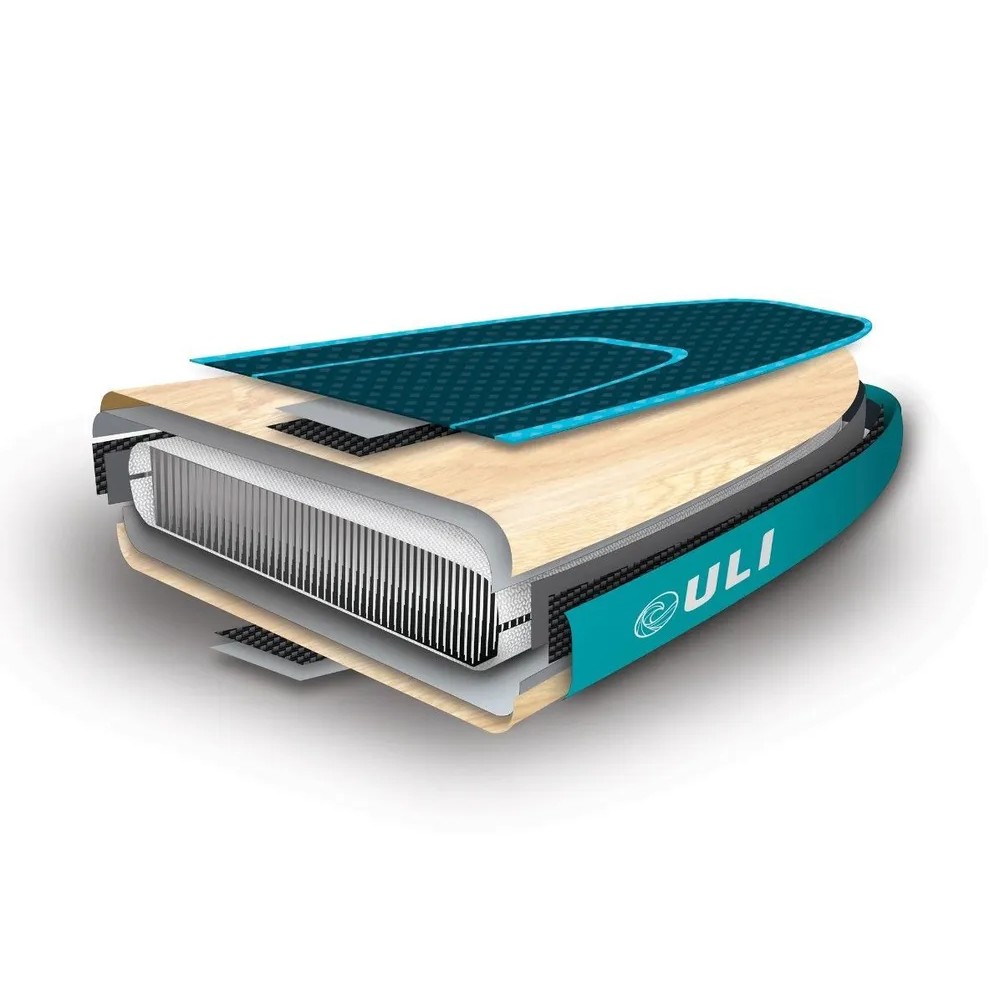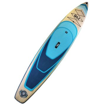 ULI Inventor 12′ х 31″ Touring – All around отличается полупрозрачным переплетением волокон древесины. Сапборд имеет трехслойные рельсы и стрингеры, усиленные углеродом, что повышает жесткость и стабильность.